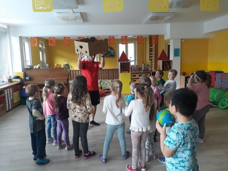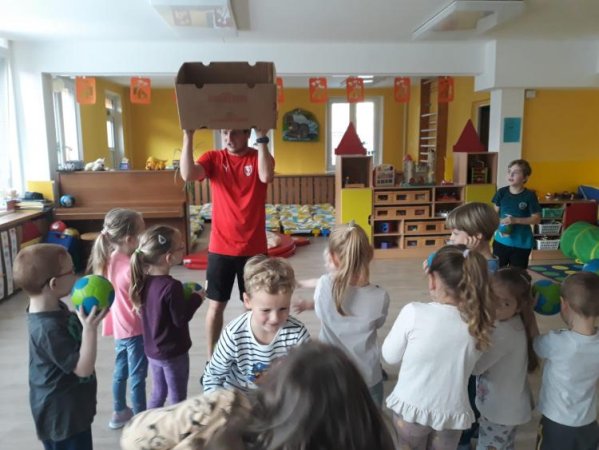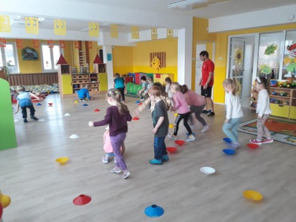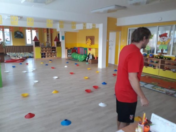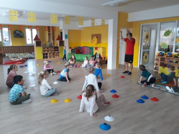 Dne 27.10.2021 naší mateřskou školu navštívil fotbalový trenér pan Břečka. Dětem, ale i učitelkám ukázal, jak zábavnou formou cvičit ve školce s využitím různých pomůcek. Děti tak mohly rozvíjet své pohybové dovednosti. Všichni jsme si to moc užili
