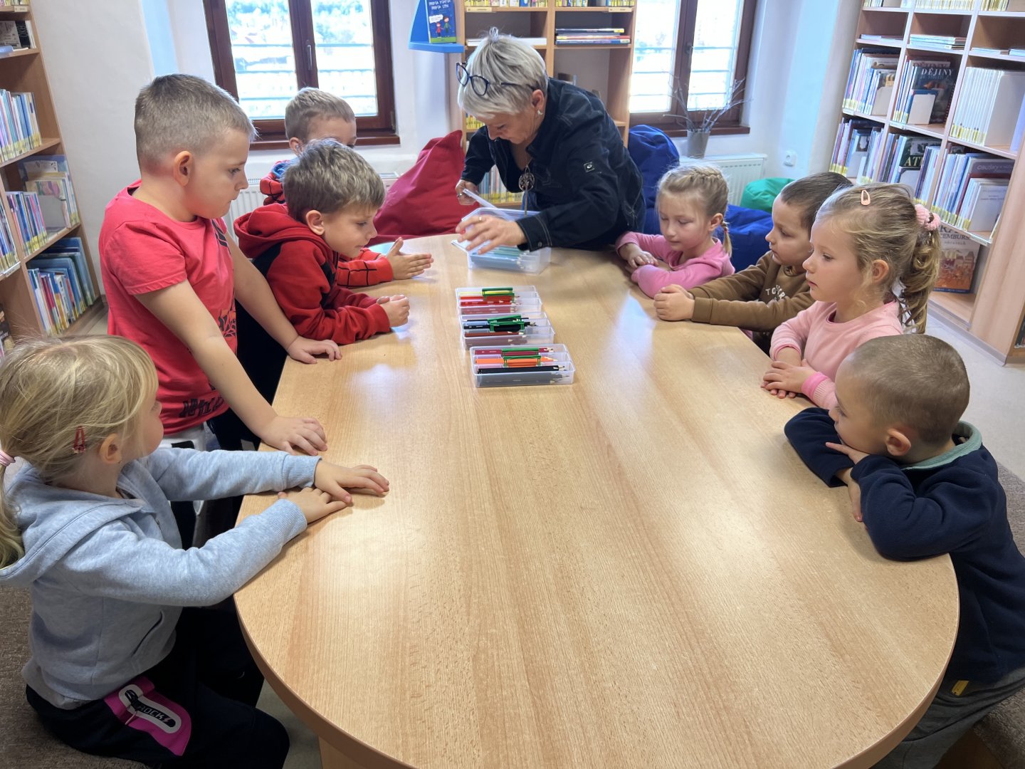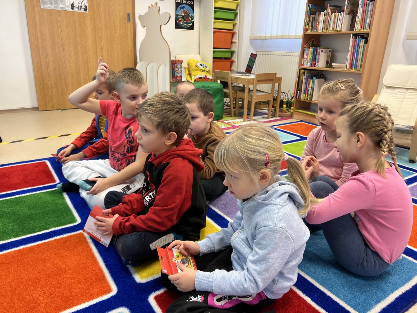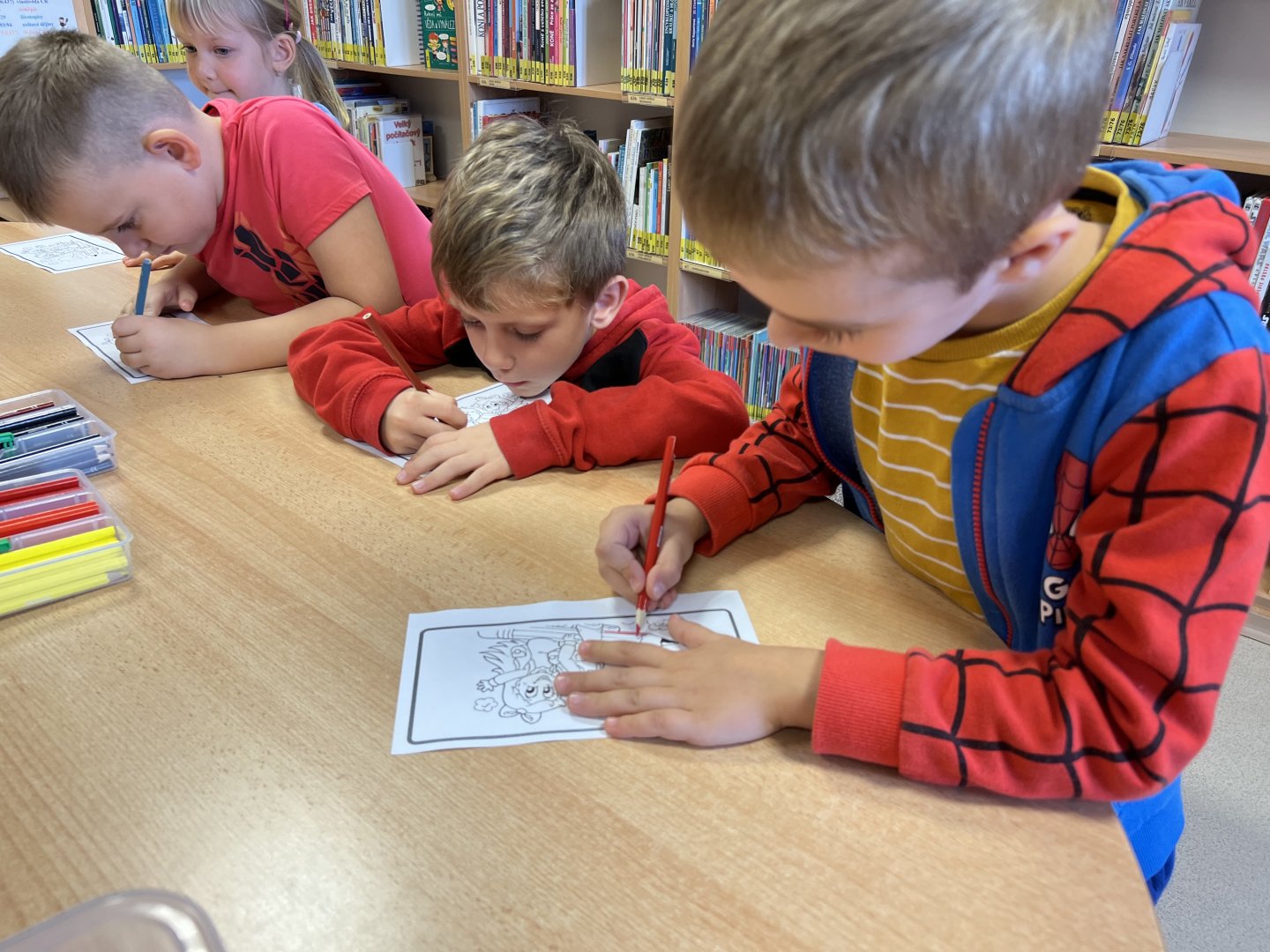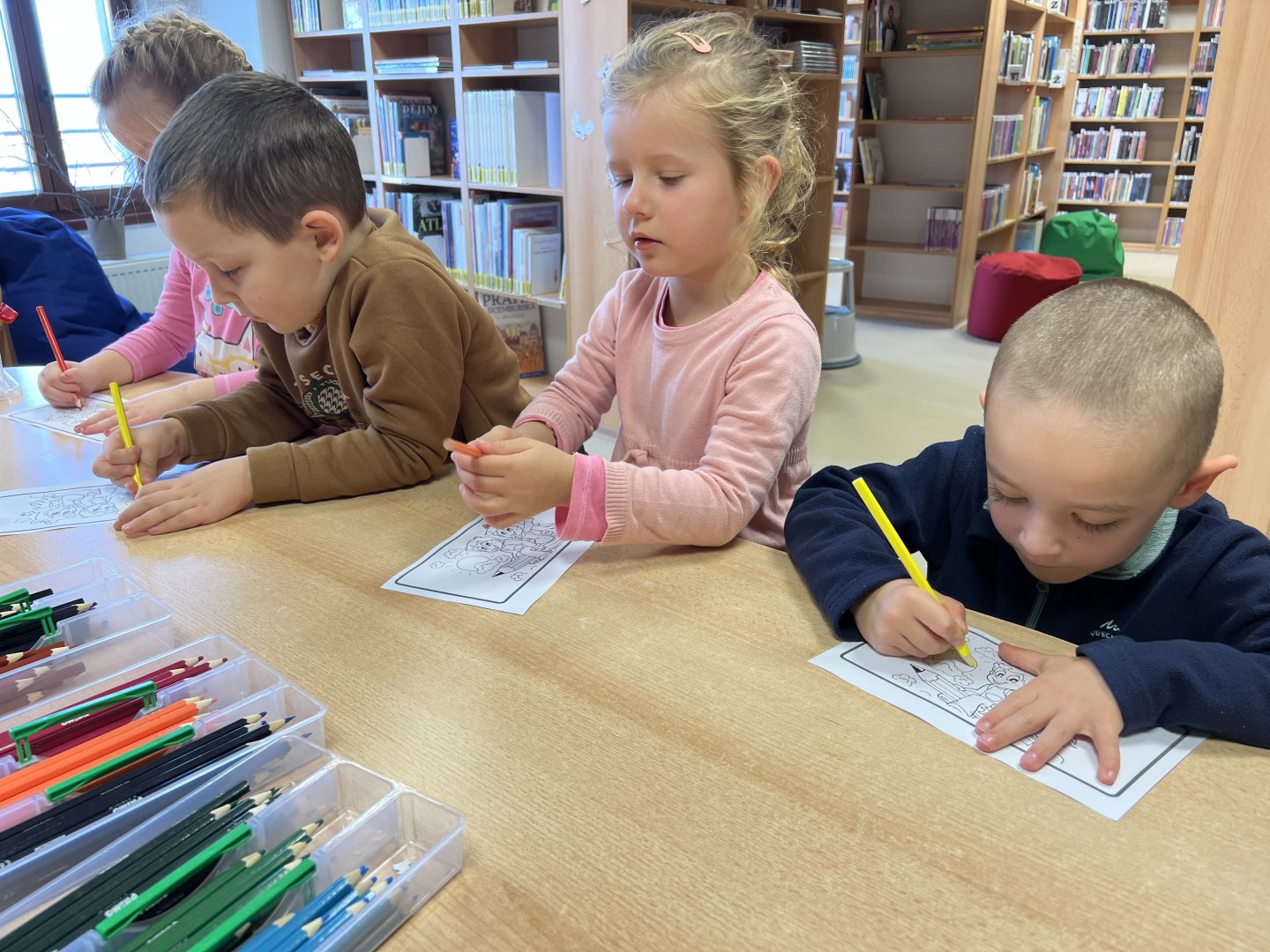 Dnes si děti v knižním klubu poslechly pohádku o tom Jak voskovky řekly dost. Děti se zamyslely nad svou oblíbenou barvou a proč je to zrovna jejich oblíbená a přečetly dopisy od nespokojených voskovem pro jejich majitele Toníka. Nakonec vybarvily obrázek, kde nesměla chybět ani jedna barva.