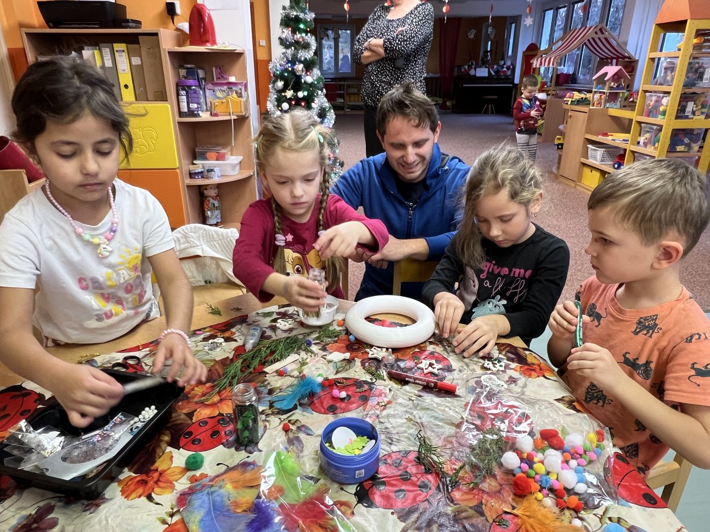 Kategorie: Veverky | Autor: Kateřina Bažantová | Zveřejněno: 8. 12. 2022 Vánoční tvoření s rodiči Dnes proběhlo v naší MŠ vánoční tvoření s rodiči. Děti si společně s rodiči vyrobili moc krásné a originální výrobky. Děkujeme za krásné společné odpoledne. Galerie