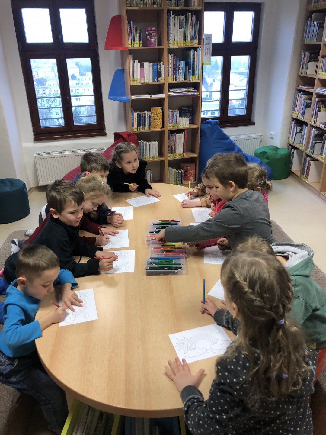 Předškoláci v knihovně pracovali s pohádkou z Knihy Duhové pohádky. Procvičovali si barvy, kreslili co rádi dělají když se nudí, poslechli si pohádku a nakonec vymýšleli její název. Za odměnu dostali obrázek který si mohli vybarvit.