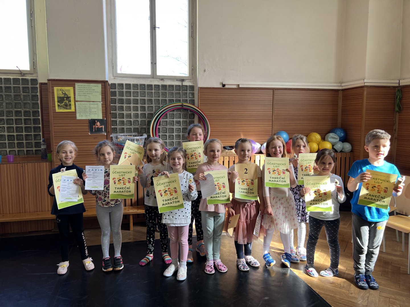 Dnes se některé děti účastnily akce pořádané ZUŠ - Taneční maraton. Děti vydržely tančit celou hodinu. Během té doby se rozcvičily jako správní tanečníci, zkusily si základy baletu i tančit jako mažoretky. Nakonci dostaly za odměnu diplom i malé ceny.