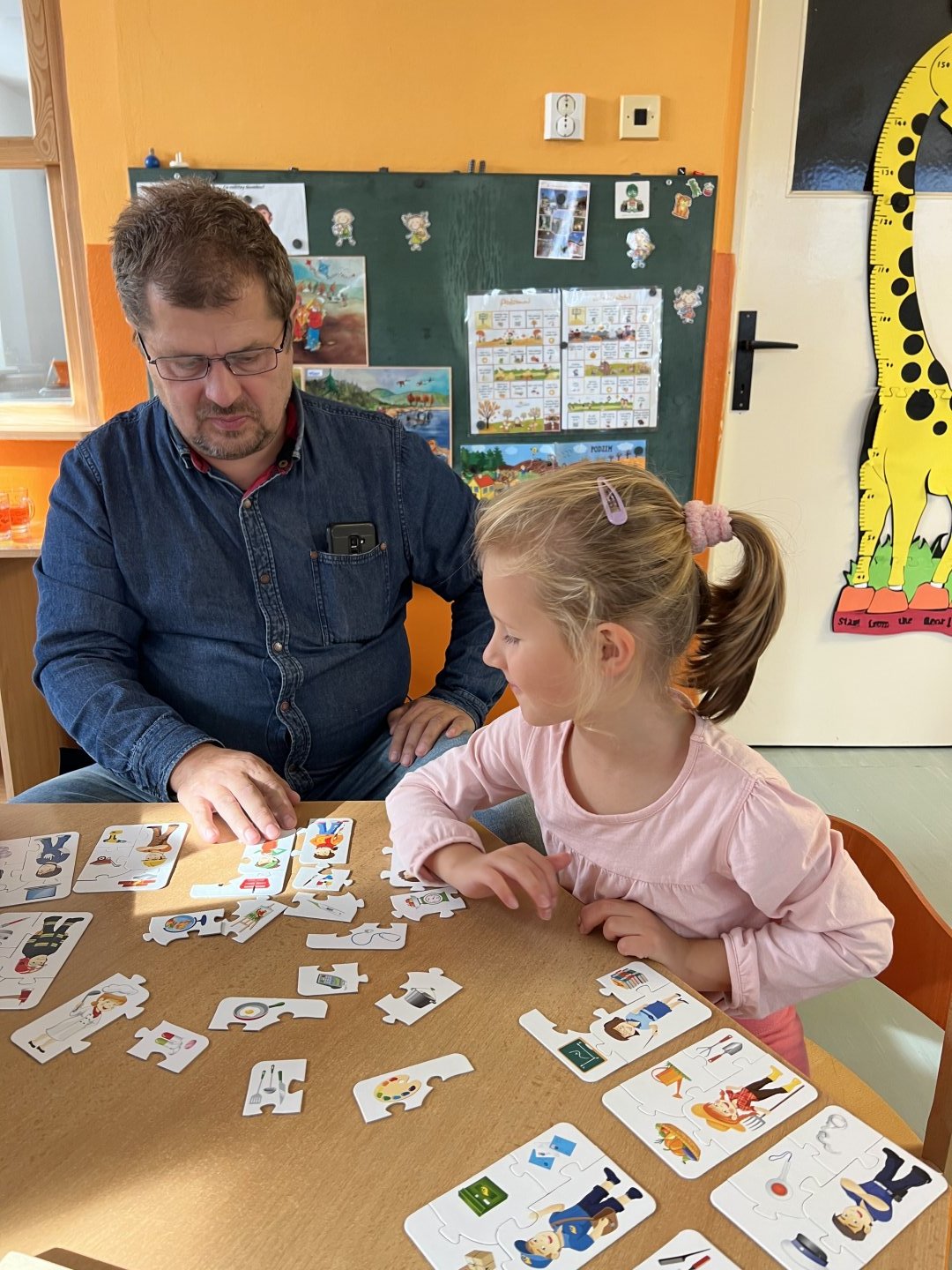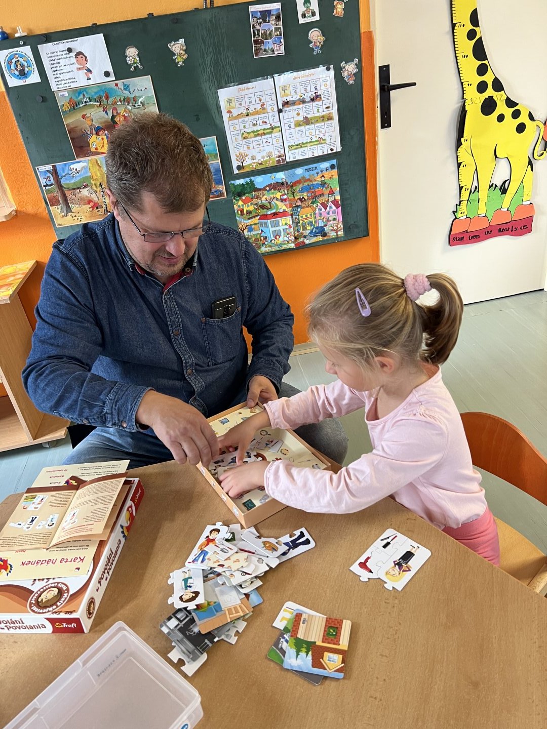 V úterý byl ve školce den plný her, na který byli zvaní i rodiče aby si s dětmi mohli půjčit a vyzkoušet různe hry, které máme ve školce. Vybrat si mohli z různých deskových her, skládaček, pexes, domina a mnoha dalších. Děti rodičům s radostí ukázaly jejich oblíbené hračky a hry a rodiče si s nimi zahráli. Jsme rádi že se zůčastnilo tolik rodičů a budeme se těšit zase příští rok.