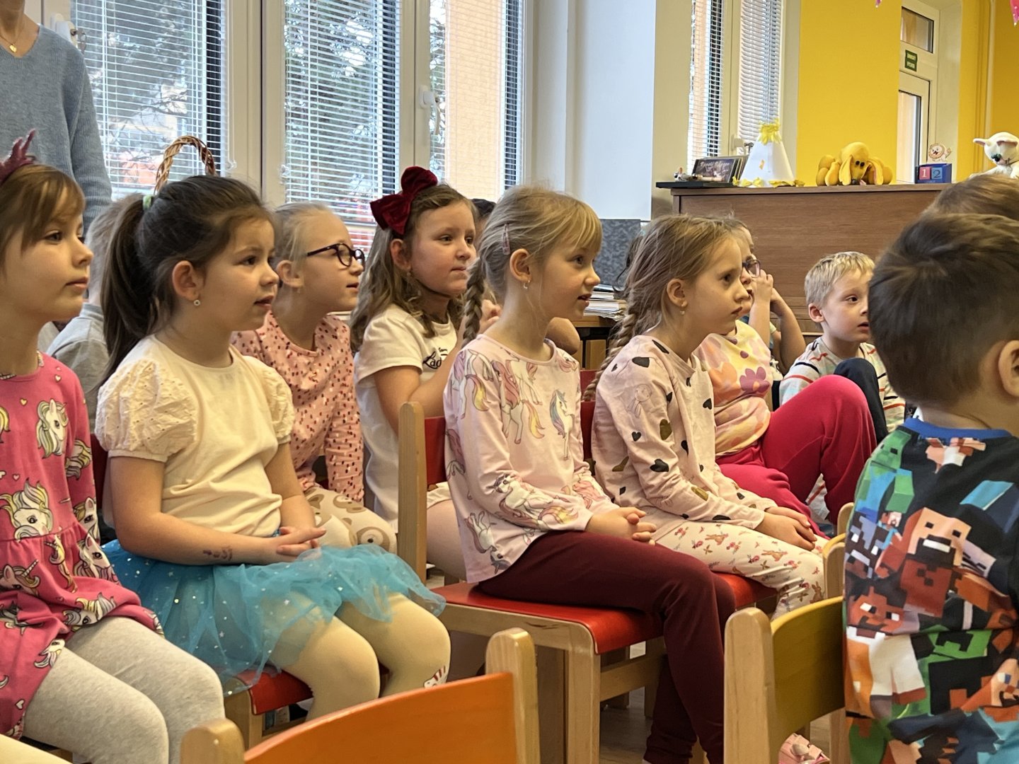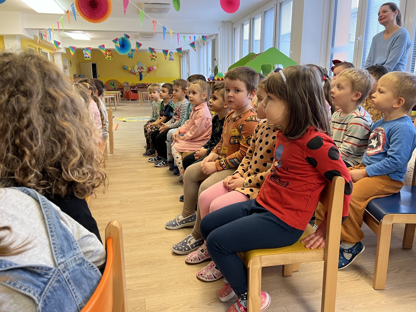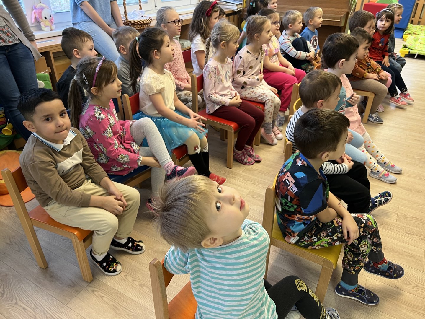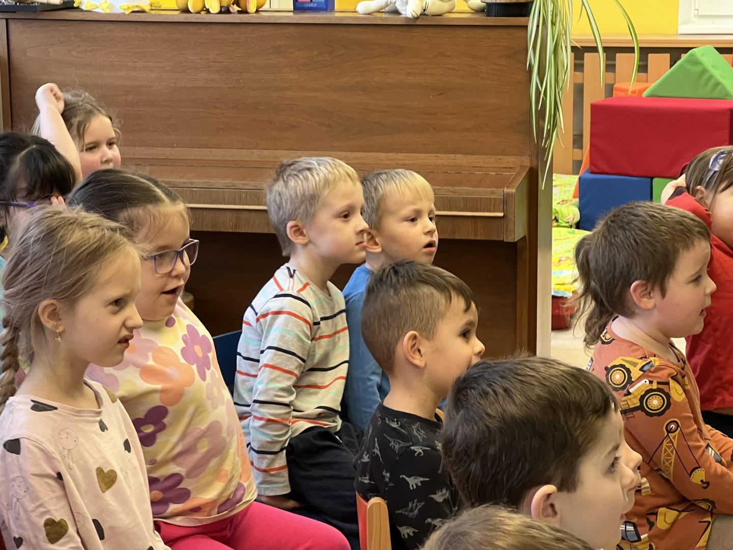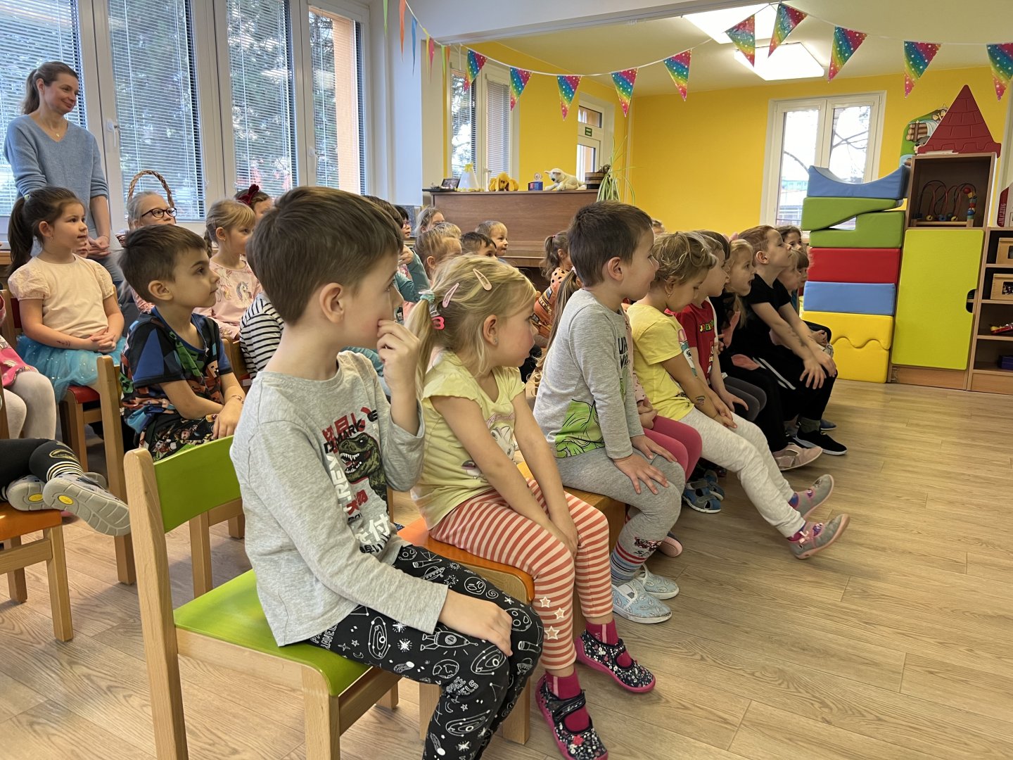 Dnes si děti vyzkoušely vzdělávací program s názvem Pejsek a kočička. Společně jsme umyli podlahu a uvřili dort. Během představení děti plnily různé úkoly a pomáhaly pejskovi a kočičce. Představení bylo krásné a děti se u trampot pejska a kočičky hodně nasmály.