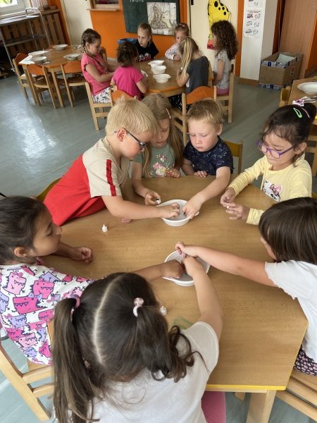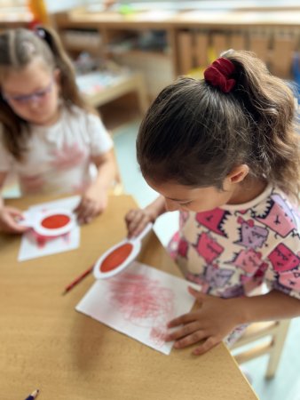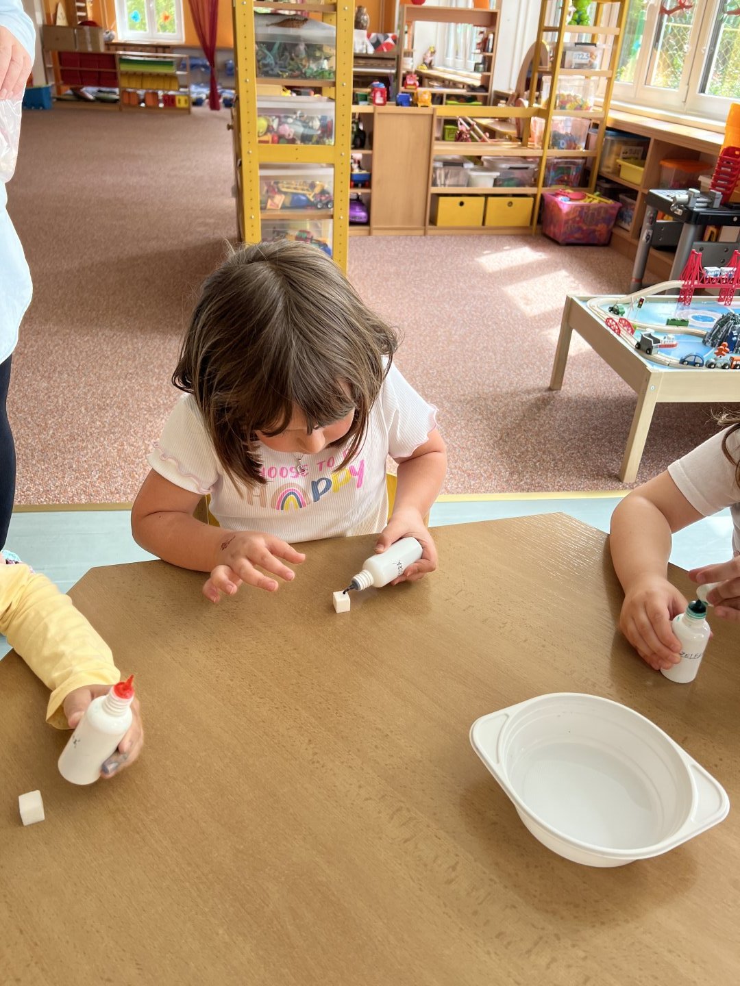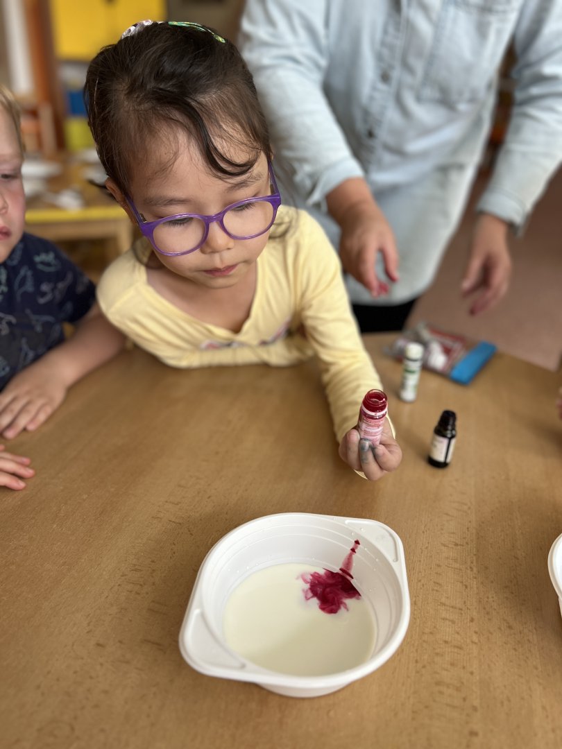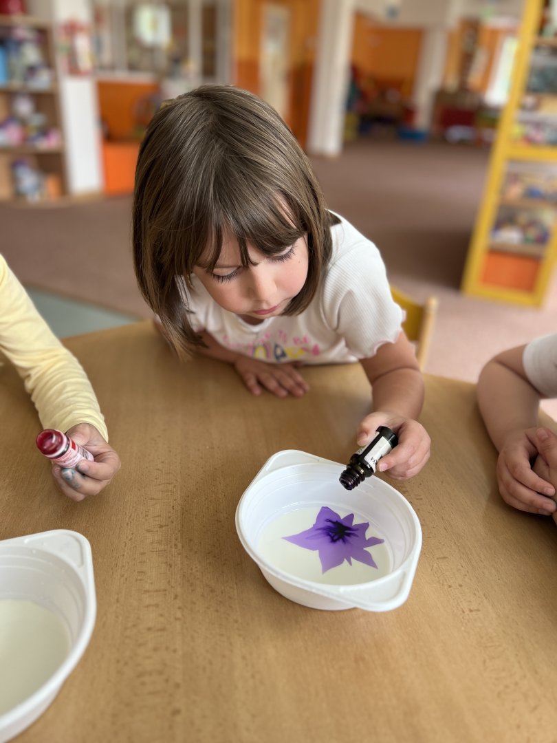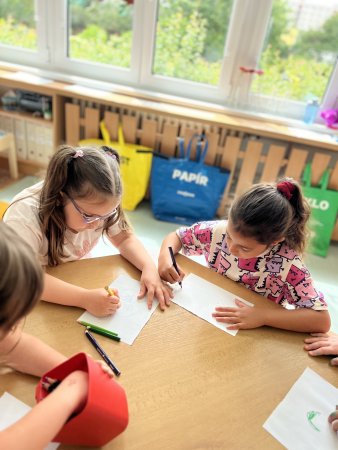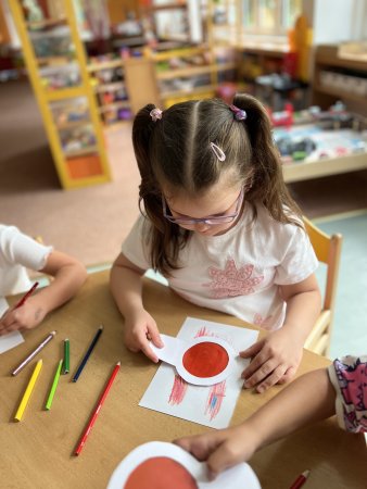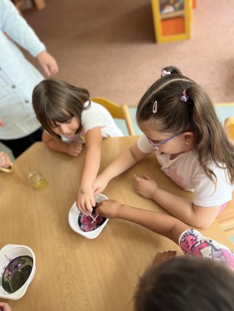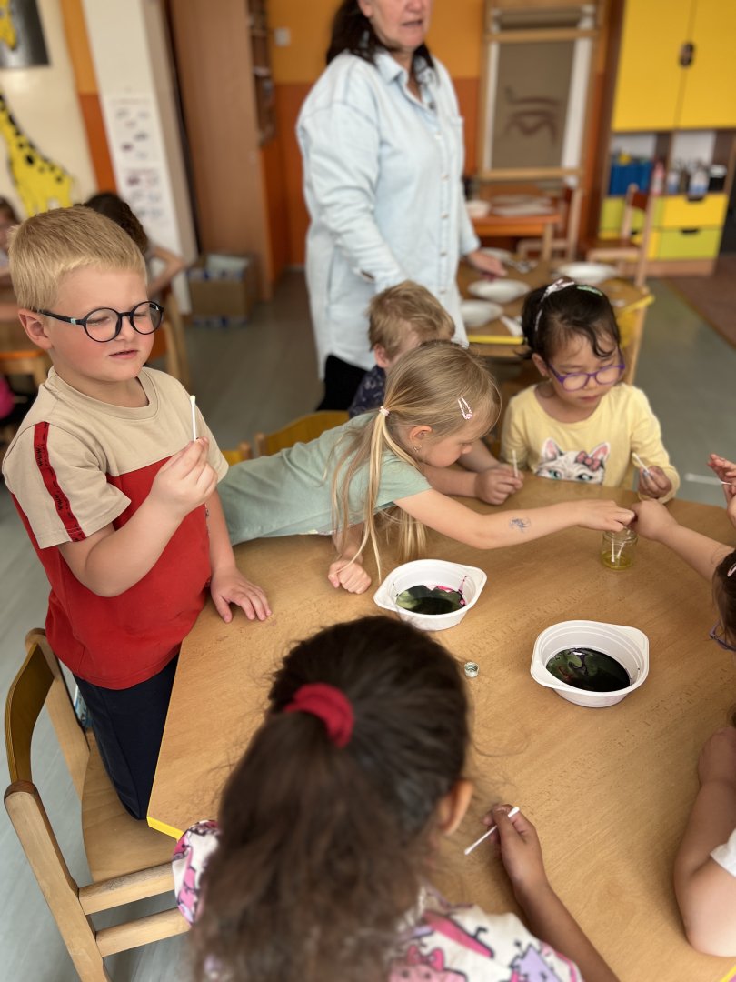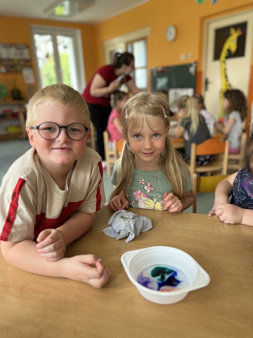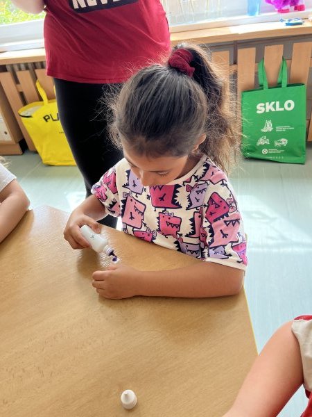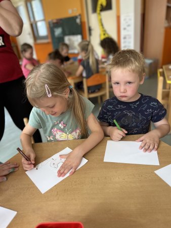 Ve školce byl workshop pro předškoláky zaměřený na barvy a pokusy s nimi. Děti si mohly vyzkoušet zajímavé pokusy s mícháním barev, jejich rozpíjením ve vodě, v mléce a taky kouzlo kdy nakreslí obrázek, překryjí ho červenou pastelkou a poté ho znovu uvidí díky kouzelné červené lupě. Dětem se pokusy moc líbily a všechny velmi zaujaly.