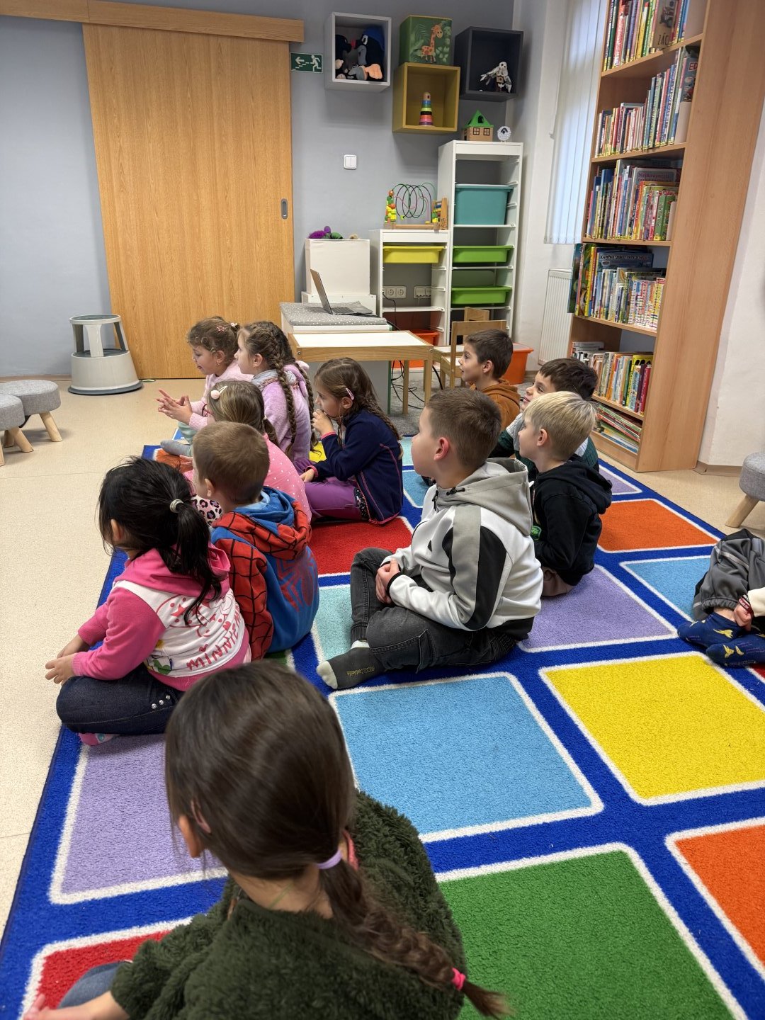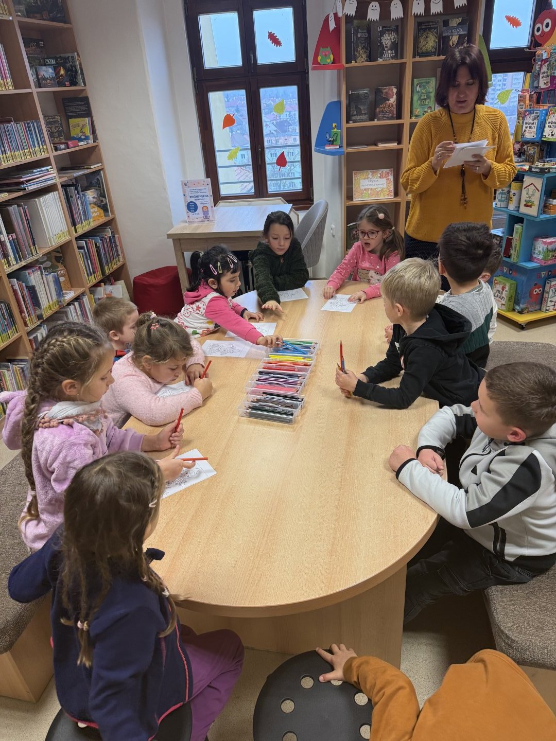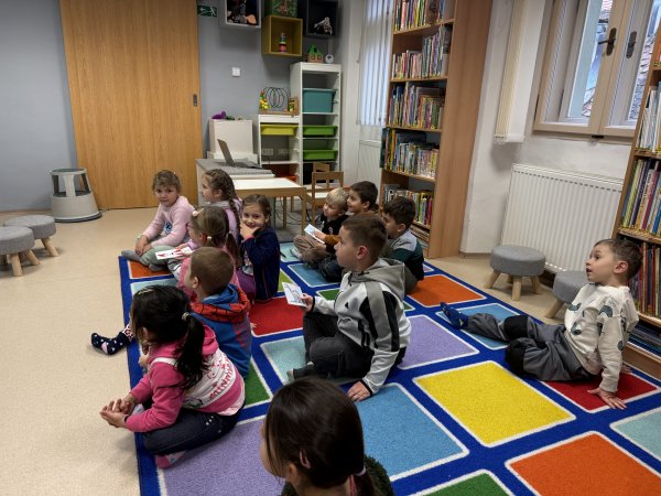 Děti během patečního dopoledne navštívily knihovnu, kde byl pro ně připravený program v podobě čtení knížky a následná rozprava nad knížkou, děti se aktivně zapojily a nesměla chybět také omalovánka na závěr.